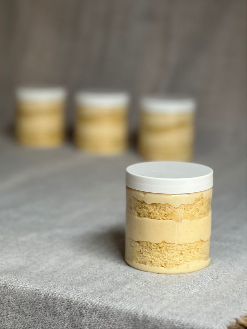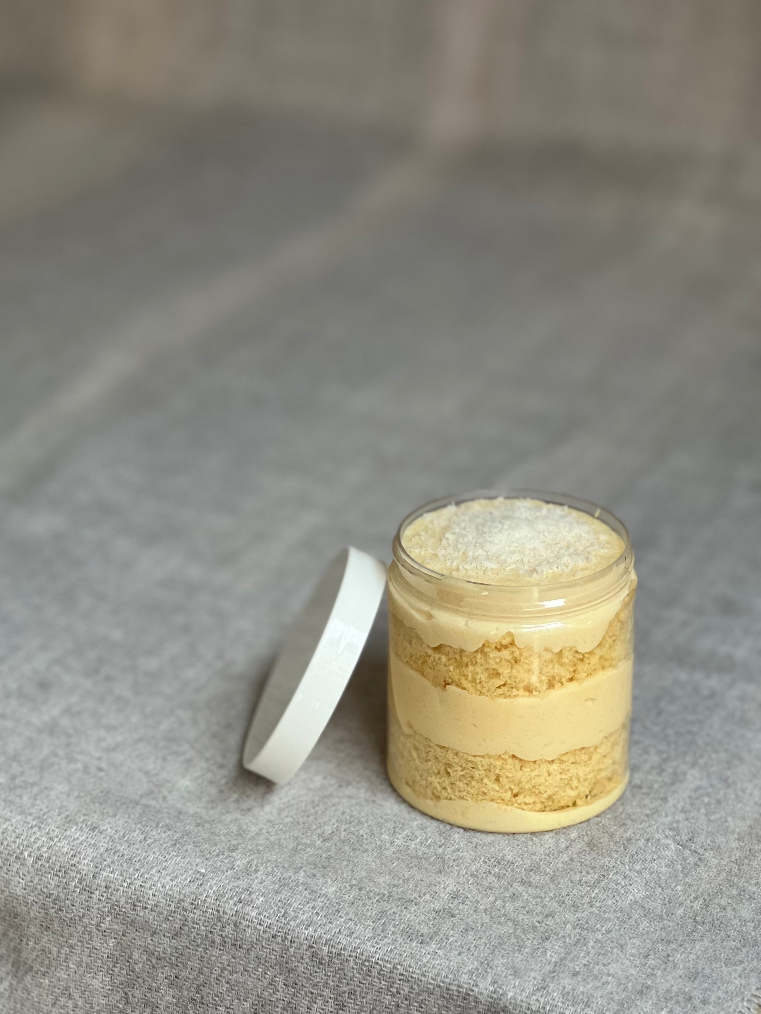 Get ready to fall in love with our Coconut cake in a jar! It’s packed with creamy coconut goodness and fluffy cake layers that make every bite so goood you’ll want more. A fun and tasty treat that’s perfect for any time you need a little sweet! Allergens: Wheat, Milk, Eggs